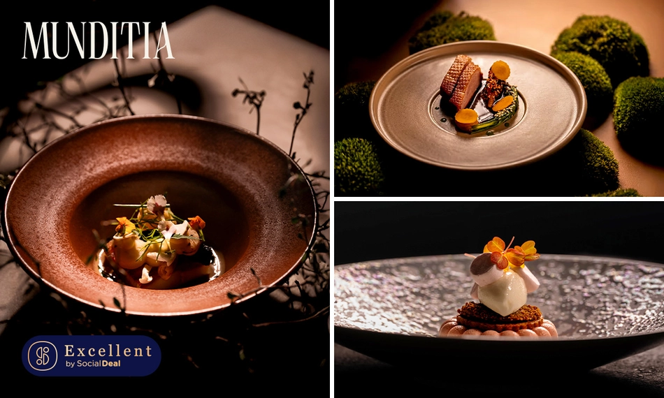 Laat je verwennen tijdens een 3- of 4-gangenlunch van de chef bij Restaurant Munditia: ervaar de kunst van verfijning, waarbij smaak, creativiteit en kwaliteit samenkomen in elk gerecht